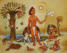 மான்வயிற்றில் பிறந்த ரிஷ்யச்ருங்கர் உலகாயத ஆடல் பாடல்களில் மயங்கி மாட்டிக் கொண்டார்.